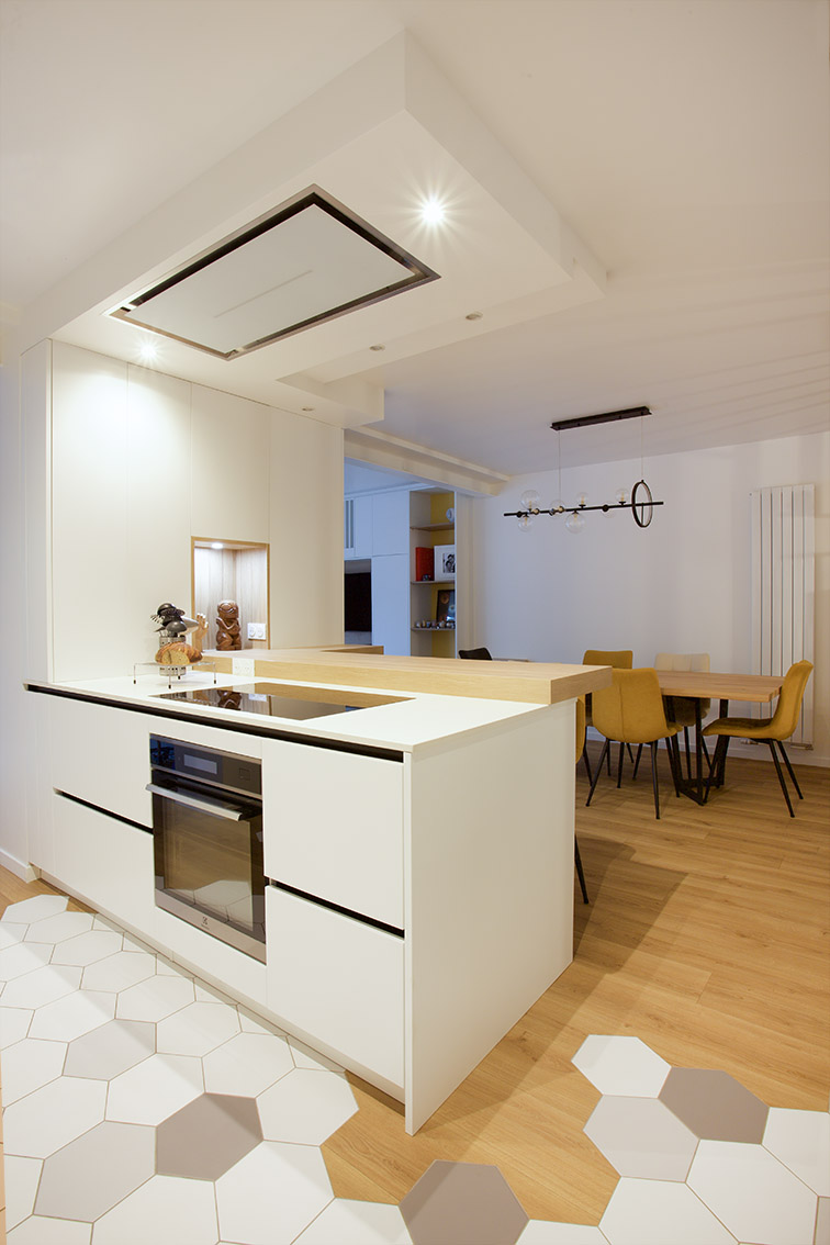 • La cuisine a été entièrement refaite, tant dans son agencement que dans ses finitions, afin de devenir un espace central, fonctionnel et convivial, en lien direct avec la vie de famille.