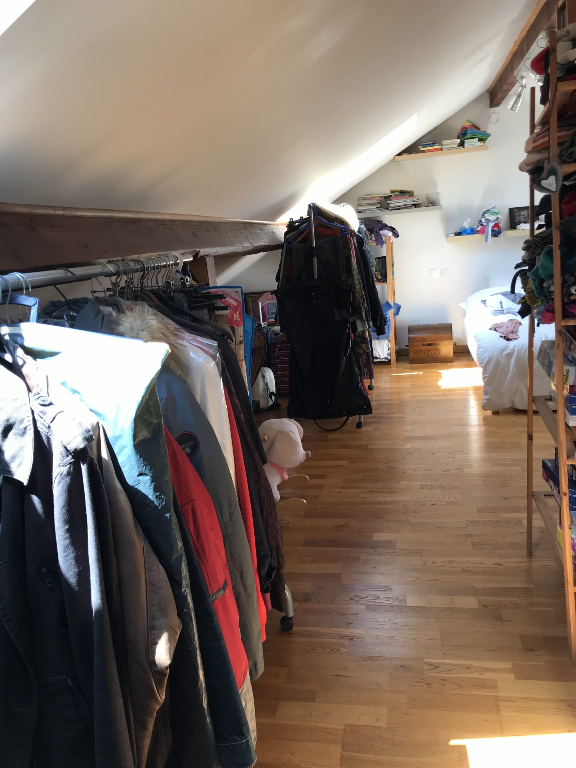 Les clients D., parents de trois enfants, vivent dans une maison dont le rez-de-chaussée et les combles ont été entièrement repensés afin de mieux répondre aux usages familiaux du quotidien. L’objectif était de créer des espaces fonctionnels, évolutifs et adaptés aux enfants, tout en conservant une lecture fluide et harmonieuse des volumes.