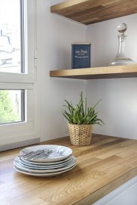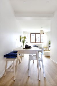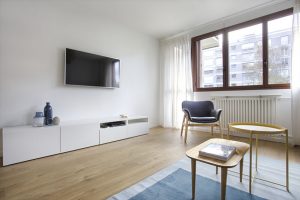 Dorénavant, c’est un appartement optimisé. Afin que l’intérieur convienne aux futurs locataires, nous partons sur un style contemporain et des couleurs actuelles tels que le bleu, le vert, le gris et des touches de jaune.